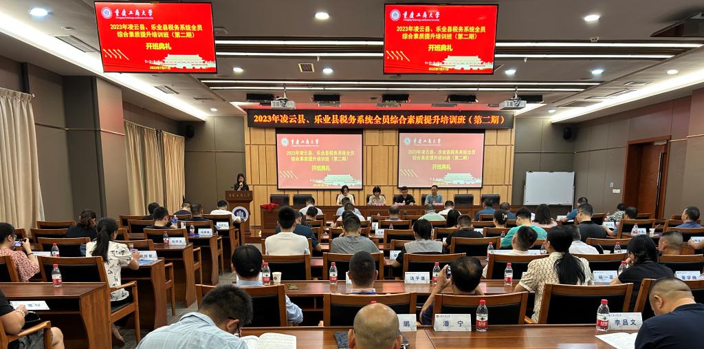 2023年7月31日上午,2023年凌云县、乐业县税务系统全员综合素质提升培训班(第二期)开班典礼在永利官网图书馆会议中心一会议室举行。凌云县税务系统39名及乐业县税务系统38名业务骨干参加此次培训。ylzzcom永利总站线路检测院长宋瑛、综合办公室主任严艳,凌云县税务局党委书记、局长潘国明、乐业县税务局党委委员、副局长吴世乐出席开班仪式。